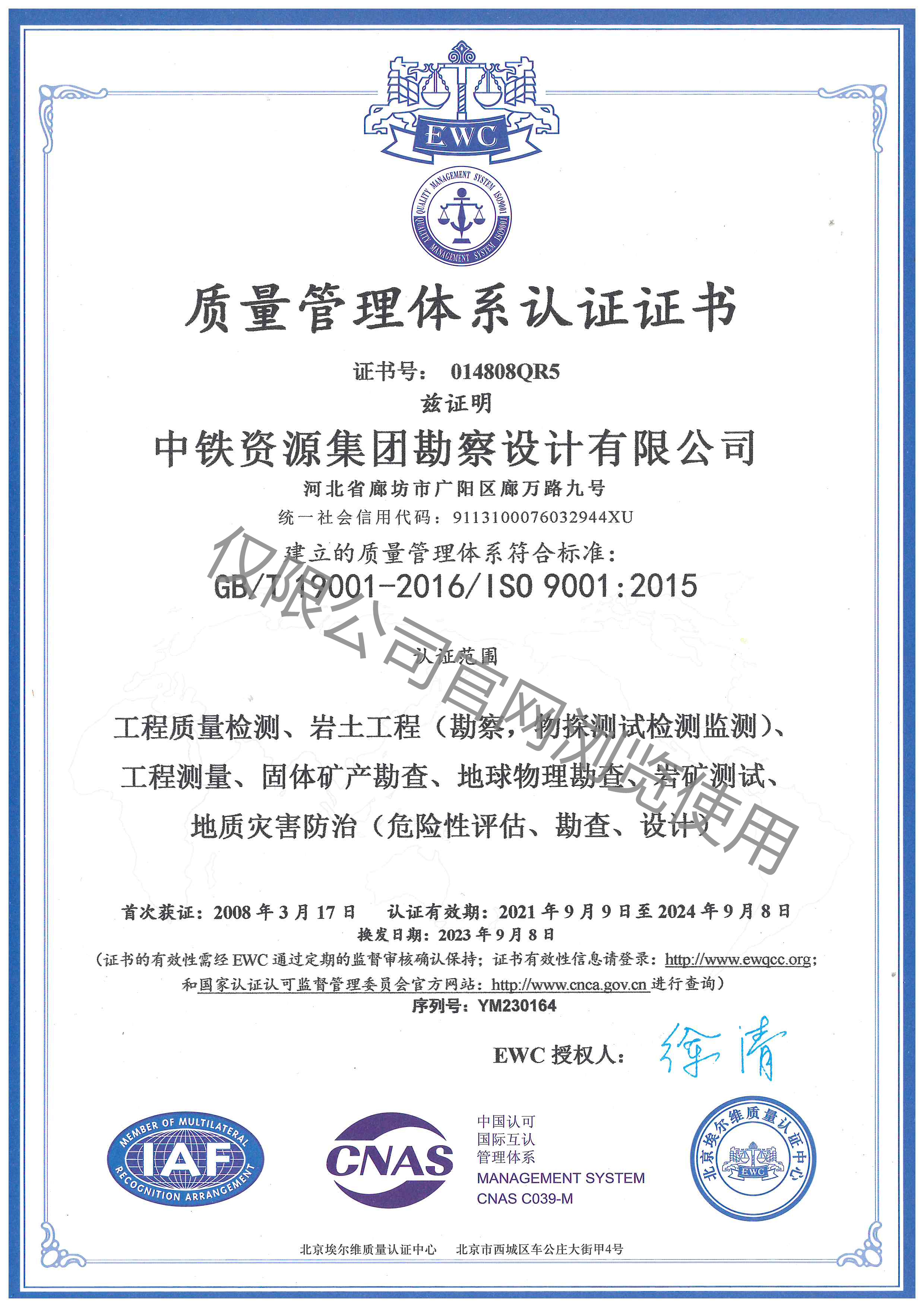 質量管理體系認證證書