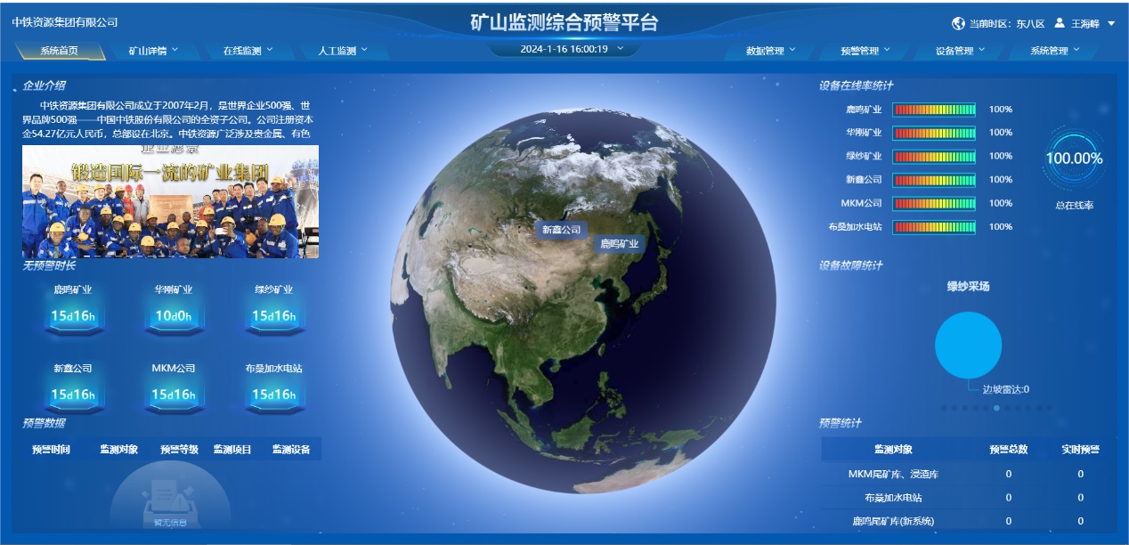礦山監(jiān)測綜合預警平臺在平穩(wěn)運行后,將在公司本部與項目現場建立同步值班機制,確保預警消息的準確推送,推動公司對礦山企業(yè)監(jiān)測服務的高質量發(fā)展。